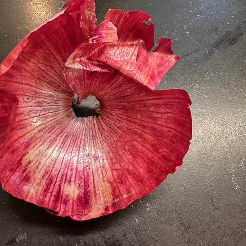 The onion skin—the translucent purple-meets-rose-meets-what-even-is-that-shade onion skin begs for my attention. I ignore the burning eyeballs and snap some pics.