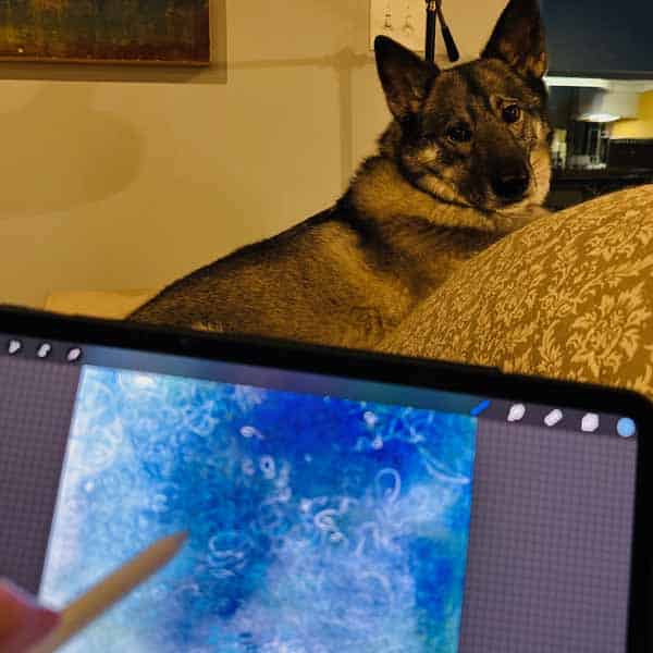 I don’t have a studio right now so I’m currently working on an iPad. No sweeping gestures across a canvas, but the creative flow is the same—layer by layer, mark by mark.